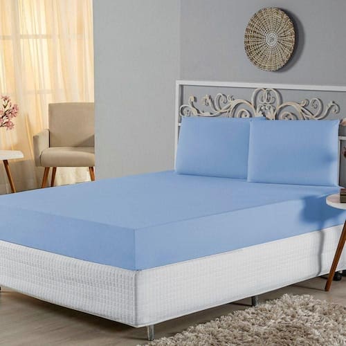 Jogo De Lençol King Malha 100% Algodão 3 Peças Cor Azul Bebe