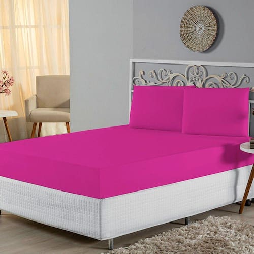 Jogo de Lençol King Malha 100% Algodão 3 Peças - Pink - Única