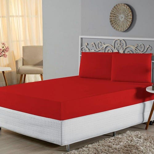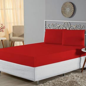 Jogo de Lençol King Malha 100% Algodão 3 Peças - Vermelho - Única