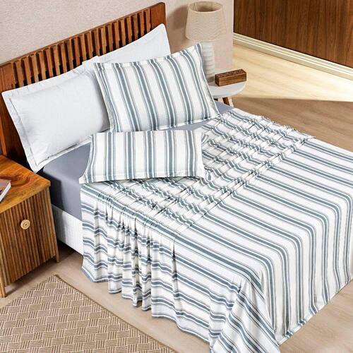 Jogo de Lençol King Marim Malha 100% Algodão Estampado 4 Peças - Cinza - Única