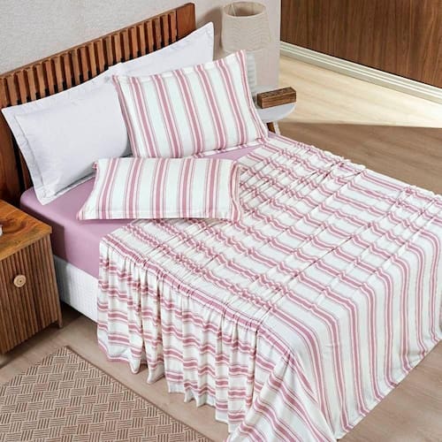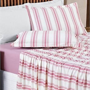 Jogo De Lençol King Marin Malha 100% Algodão Estampado 4 Peças Cor Rose Listra - Rosa