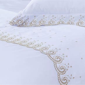 Para quem ama decorar o quarto com estilo clássico os itens da coleção Mistral são essenciais. Peças sofisticadas que unem tecido de alta qualidade com bordados belos e minuciosos. O jogo de lençol é composto por 4 peças, sendo elas: um lençol de cima com vira bordada, um lençol de baixo de elástico e duas fronhas com abas em 3 lados com bordado de ponto ajour e fechamento modelo envelope na parte traseira. Os itens são fabricados com percal 200 fios 100% algodão com toque extremamente macio e qualidade superior.