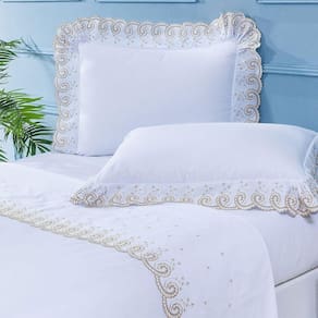 Para quem ama decorar o quarto com estilo clássico os itens da coleção Mistral são essenciais. Peças sofisticadas que unem tecido de alta qualidade com bordados belos e minuciosos. O jogo de lençol é composto por 4 peças, sendo elas: um lençol de cima com vira bordada, um lençol de baixo de elástico e duas fronhas com abas em 3 lados com bordado de ponto ajour e fechamento modelo envelope na parte traseira. Os itens são fabricados com percal 200 fios 100% algodão com toque extremamente macio e qualidade superior.