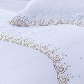 01 - Lençol de Cima com Vira Bordada 2,80m x 2,70m 01 - Lençol de Baixo Liso com Elástico para Colchão de 2,03m x 1,93m x 40cm