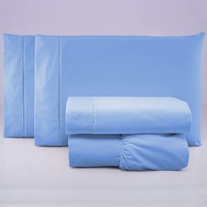 Apresentamos nosso Jogo de Lençol Ponto Palito, confeccionado com Tecido Percal 200 Fios 100% Algodão, o lençol de cima possui um lindo acabamento em ponto palito, lençol de baixo com elástico em toda a volta, o jogo de lençol tem toque leve e macio, trazendo conforto, praticidade e qualidade para a sua cama.