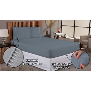 Jogo De Lençol King Size 400 Fios 3 Peças Fronha Ponto Palito Aveludado Cinza