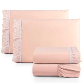 Além disso, o lençol apresenta um barrado de lese que acrescenta um toque de sofisticação e charme à sua cama. O barrado de lese, com seus delicados desenhos e detalhes rendados, eleva o design do lençol, transformando-o em uma peça única que reflete o bom gosto e a atenção aos detalhes.