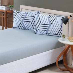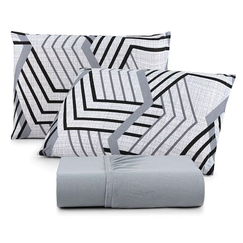 Jogo De Lençol Luar Casal 3 Peças Malha 100% Algodão Estampado Cinza Geométrico