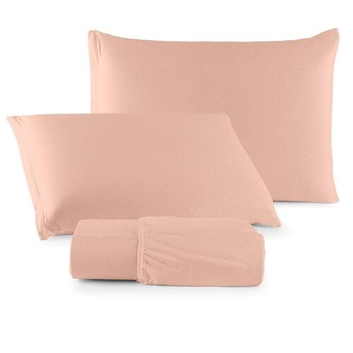 Jogo De Lençol Luar King 3 Peças Malha 100% Algodão Liso Salmão