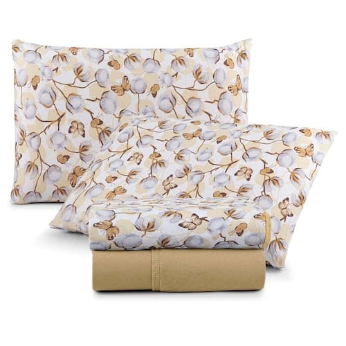 Jogo De Lençol Luar King 4 Peças Malha 100% Algodão Estampado Mostarda Cotton