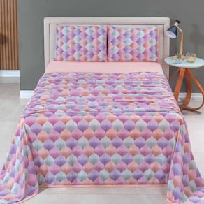 Jogo De Lençol Luar King 4 Peças Malha 100% Algodão Estampado Salmão Geométrico