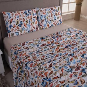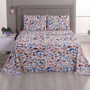 Jogo De Lençol Luar Queen 4 Peças Malha 100% Algodão Estampado - Bege Borboleta