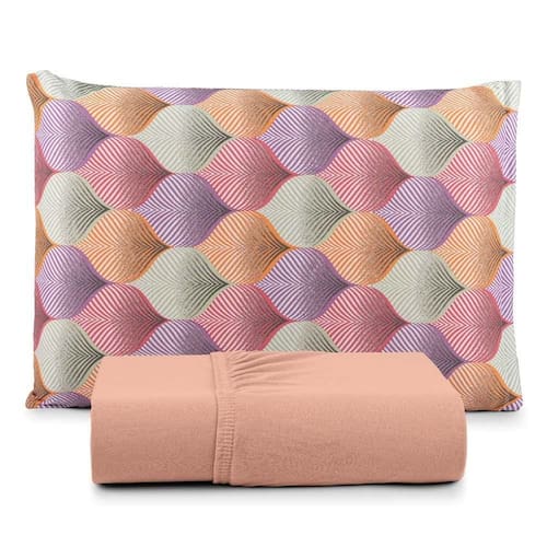 Jogo De Lençol Luar Solteiro 2 Peças Malha 100% Algodão Estampado - Salmão Geométrico