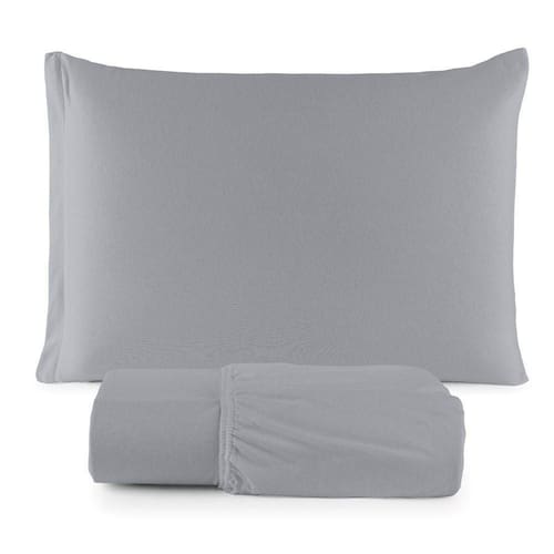 Jogo De Lençol Minimal Solteiro 2 Peças Malha 100% Algodão Liso - Cinza