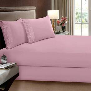 Jogo De Lençol Naira Com Renda 100% Poliéster 3 Peças - Buettner Rosa - Queen -