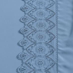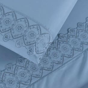 O Bordado Inglês exclusivo é mais do que um detalhe estético; é um testemunho da qualidade artesanal e da atenção aos detalhes que garantem a durabilidade e o charme contínuo deste jogo de cama.