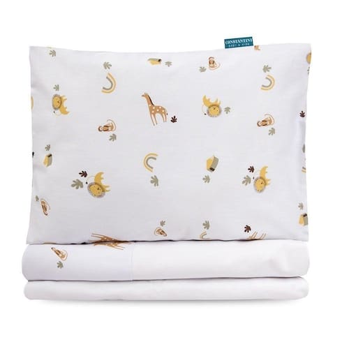 Jogo De Lençol Para Berço Americano 100% Algodão 3 Peças Boho Safari - Branco