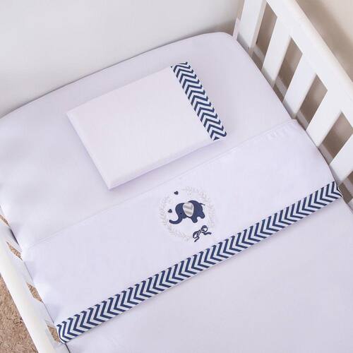 Jogo De Lençol Para Berço Americano 3 Peças Elefante Azul Marinho