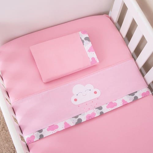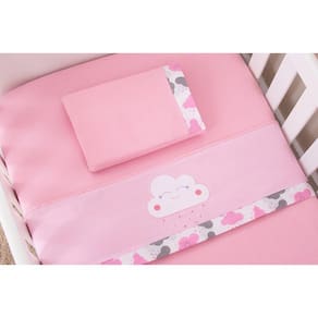 Jogo De Lençol Para Berço Americano 3 Peças Nuvem Rosa