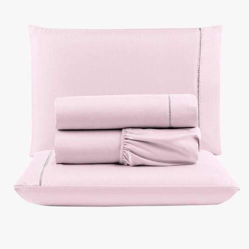 Jogo De Lençol Peletizado 400 Fios Queen 4 Peças Barato - Casa - Hotel - Pousada - Rosa