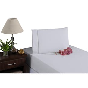 Jogo de lençol solteiro 2 peças 100% algodão Extrema maciez, vai deixar sua noite de sono mais confortável por ser produzido em um tecido percal 200 fios e 100% algodão, com ótimo acabamento, dará um ar mais elegante para o seu quarto. Contém: 01 lençol com elástico para colchão de: 1,88 x 0,88m x 0,25 cm de altura. 01 fronhas 70cm x 50cm. As fronhas possuem um lindo acabamento em ponto palito Composição: 100% algodão Tecido: Percal 200 Fios Cor: Branco