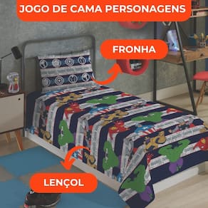 Características: -Coleção: Lepper Kids -Composição: 100% Poliéster -Estampa: Avengers -Fabricante: Lepper -Gramatura: 65g/m² -Amassa Menos -Não Precisa Passar -Seca + Rápido -Serve em cama box