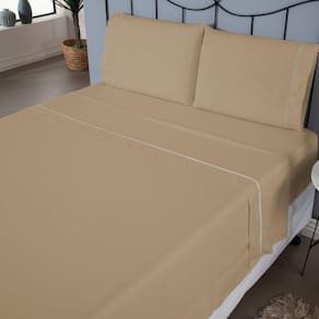 Jogo De Lençol Ponto Palito Completo 4 Peças Casal 80% Algodão - 20% Poliéster Percal 140 Fios Cor:cáqui - Única
