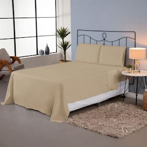 Jogo De Lençol Ponto Palito Completo 4 Peças Casal 80% Algodão / 20% Poliéster Percal 140 Fios Cor:cáqui