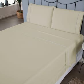 Jogo De Lençol Ponto Palito Completo 4 Peças Casal 80% Algodão / 20% Poliéster Percal 140 Fios Cor:palha