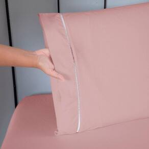 Quantidade de Peças e Medidas Aproximadas:1 Lençol sem elástico: 2,50 m (comprimento) x 2,05 m (largura)1 Lençol com elástico: 1,88 m (comprimento) x 1,38 m (largura) x 30 cm (altura)2 Fronhas: 70 cm (comprimento) x 50 cm (largura)Material e Composição:Tecido: 80% algodão / 20% poliéster - percal 140 fiosInformações Específicas:Detalhe Ponto Palito: Presente nas fronhas, com ótimo tamanho de transpasse para evitar que o travesseiro Completo: Inclui um lençol de cima (virol) que pode ser para ástico: Presente em toda a volta do lençol de baixo, garantindo melhor ção: Ideal para compor a decoração do quarto, facilmente combinável com outras peçção!A tonalidade da cor pode variar de acordo com cada tela de dispositivo.Informações Gerais:O material visual é meramente ilustrativo e pode haver alterações na tonalidade da cor da imagem do produto devido a diferenças de telas de visualizaçã atento(a) à descrição do produto, pois nem todas as peças mostradas nas imagens estão incluídas.