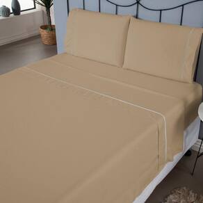 Quantidade de Peças e Medidas Aproximadas:1 Lençol sem elástico: 2,50 m (comprimento) x 2,40 m (largura)1 Lençol com elástico: 1,98 m (comprimento) x 1,58 m (largura) x 40 cm (altura)2 Fronhas: 70 cm (comprimento) x 50 cm (largura)Material e Composição:Tecido: 80% algodão / 20% poliéster - percal 140 fiosInformações Específicas:Detalhe Ponto Palito: Presente nas fronhas, com ótimo tamanho de transpasse para evitar que o travesseiro Completo: Inclui um lençol de cima (virol) que pode ser para ástico: Presente em toda a volta do lençol de baixo, garantindo melhor ção: Ideal para compor a decoração do quarto, facilmente combinável com outras peçção!A tonalidade da cor pode variar de acordo com cada tela de dispositivo.Informações Gerais:O material visual é meramente ilustrativo, e pode haver alterações na tonalidade da cor da imagem do produto devido a diferenças de telas de visualizaçã atento(a) à descrição do produto, pois nem todas as peças mostradas nas imagens estão incluídas.