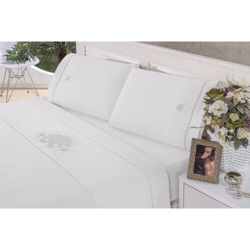 Composição: 100% Algodão Percal 150 Fios Detalhe: Bordado com Ponto em Crivo Acabamento em Ponto Palito Jogo De Lençol Queen 4peças Marca: Não Informado