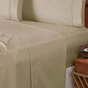 Jogo De Lençol Queen Confort Micropercal 300 Fios Toque De Algodão 4 Peças - Caqui - Cáqui