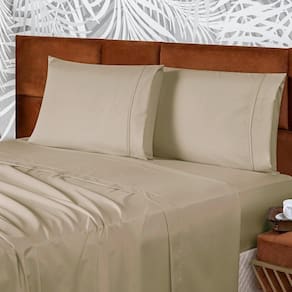 Jogo De Lençol Queen Confort Micropercal 300 Fios Toque De Algodão 4 Peças - Caqui