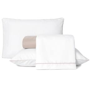 O kit conta com fronha e sobre lençol na cor branca. A fronha possui fechamento em envelope, o que facilita a retirada para lavagem. O jogo também acompanha um lençol com elástico nas 04 laterais.