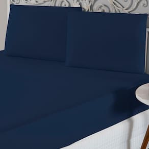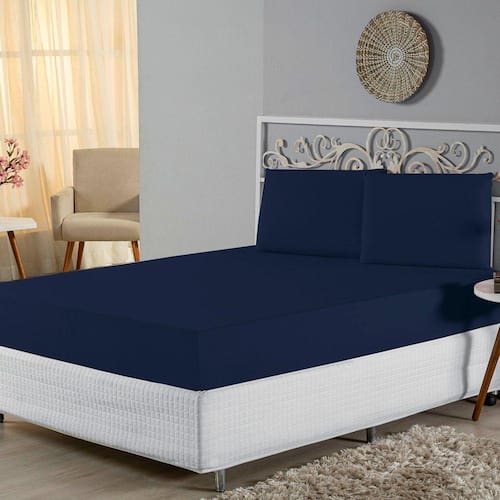 Jogo de Lençol Queen Malha 100% Algodão 3 Peças - Marinho - Única