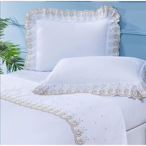 Conteúdo da embalagem:01 Lençol de cima com vira bordada 2,60m x 2,40m01 Lençol de baixo com elástico em toda volta 2,00m x 1,60m x 40cm alt.02 Fronhas com abas bordadas 70cm x 50cm medida útil, sem contar as abas Composição: Tecido Percal 200 Fios 100% Algodão Marca: Não Informado
