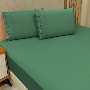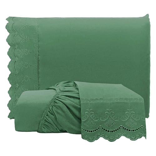 O destaque fica por conta do delicado bordado inglês nas fronhas, que adiciona charme e elegância ao conjunto, tornando-o perfeito para compor uma cama sofisticada e acolhedora. Ideal para quem aprecia o equilíbrio entre requinte e bem-estar no ambiente do quarto.
