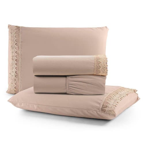 Jogo De Lençol Rubi Casal 4 Pçs 100% Algodão 200 Fios Ponto Palito Bordado - Avelã - Única