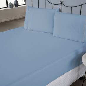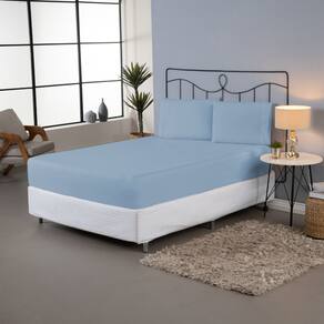 Jogo de Lençol Simples Ponto Palito King 3 Pçs - Azul