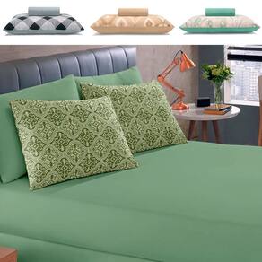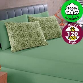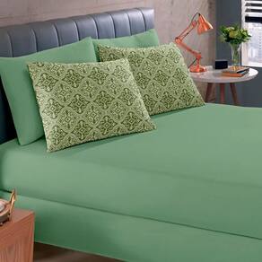 Jogo de Lençol Solteiro 2 Peças Estampado de Malha 100% Algodão com Elástico Buettner - Emcompre - Verde