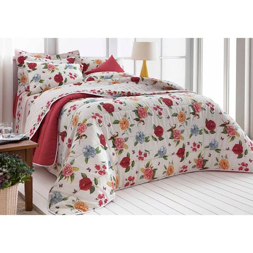 Deixe seu quarto ainda mais aconchegante,harmonioso e tenha noite de sono tranquila e confortáveis. Com uma atmosfera romântica e estampas com cores alegres e vivas,esse jogo de cama duplo é confeccionado em tecido 50% algodão e 50% poliéster com 140 fios e possui tratamento antipilling,que impede a formação de bolinhas nas peças,prolongando sua durabilidade,maciez e mais tempo de conservação do produto. Com caimento perfeito,seu quarto nunca mais será como antes.