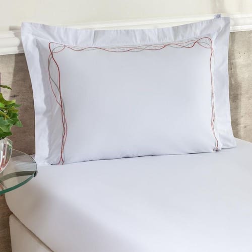 Coleção Egeo possui itens que unem o moderno ao elegante e são ideais para compor a decoração do seu quarto com estilo e conforto. O jogo de lençol Egeo é composto de lençol de baixo com elástico em toda volta liso branco e fronha branca com abas em 3 lados e fechamento modelo envelope. A fronha possui bordado localizado nas laterais.