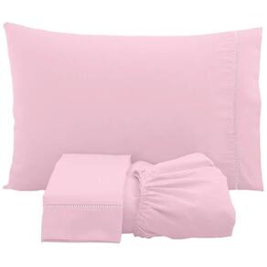 Jogo De Lençol Solteiro Percal 200 Fios 100% Algodão 3 Peças - Rosa