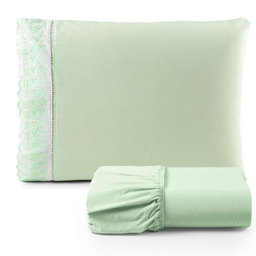 Além disso, o lençol apresenta um barrado de lese que acrescenta um toque de sofisticação e charme à sua cama. O barrado de lese, com seus delicados desenhos e detalhes rendados, eleva o design do lençol, transformando-o em uma peça única que reflete o bom gosto e a atenção aos detalhes.