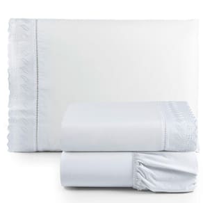 Além disso, o lençol apresenta um barrado de lese que acrescenta um toque de sofisticação e charme à sua cama. O barrado de lese, com seus delicados desenhos e detalhes rendados, eleva o design do lençol, transformando-o em uma peça única que reflete o bom gosto e a atenção aos detalhes.