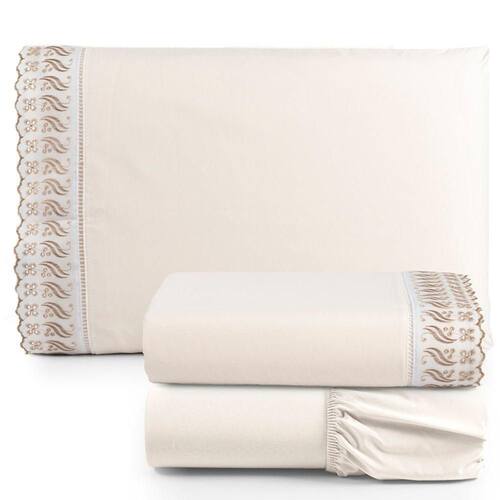 Além disso, o lençol apresenta um barrado de lese que acrescenta um toque de sofisticação e charme à sua cama. O barrado de lese, com seus delicados desenhos e detalhes rendados, eleva o design do lençol, transformando-o em uma peça única que reflete o bom gosto e a atenção aos detalhes.
