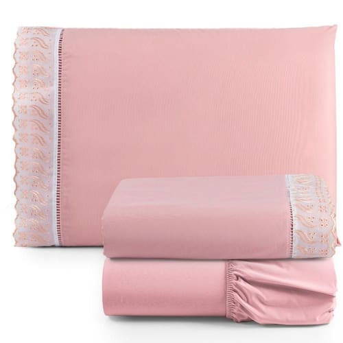 Jogo De Lençol Suave Lese Percal 180 Fios Solteiro 3 Peças Barato - Rosê