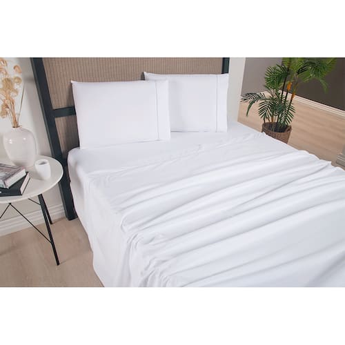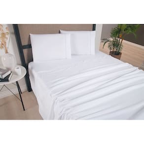 Jogo de Lençol Versatile Ponto Palito Completo 4 Peças King 100% Poliéster Micropercal 300 Fios.Contém na Embalagem:01 Lençol sem elástico (de cima): 2,40m comp. x 2,80m larg.;01 Lençol com elástico: 2,03m comp. x 1,93m larg. x 40cm alt.;02 Fronhas: 70cm comp. x 50cm larg.Material e Composição: Tecido 100% Poliéster - Micropercal 300 Fios.ATENÇÃO!A tonalidade da cor pode variar de acordo com cada tela de dispositivo.Informações Específicas:- Versatilidade: se adapta a diferentes estilos de decoração e ambientes, garantindo uma harmonia visual em qualquer quarto de casal;- Conforto superior: fabricado com tecido 100% poliéster micropercal de 300 fios, proporciona um toque suave e macio, garantindo noites de sono tranquilas e confortáveis;- Detalhe ponto palito: adiciona um charme extra ao conjunto de lençóis, conferindo um visual elegante e sofisticado à cama;- Durabilidade: a alta qualidade do material e a construção cuidadosa garantem a durabilidade do jogo de lençol, mantendo sua beleza e integridade mesmo após múltiplas lavagens;- Praticidade: composto por quatro peças essenciais, sendo: lençol de cima + lençol de baixo + fronhas, o conjunto oferece praticidade na hora de vestir a cama e facilita a rotina de cuidados com a roupa de cama.Instruções de Lavagem:- Temperatura máxima de lavagem: 40ºC;- Não alvejar, não branquear;- Não secar em tambor;- Secagem em varal à sombra;- Temperatura máxima da base do ferro de 110ºC sem vapor;- Não limpar a seco.