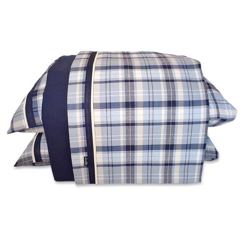 - Cor do lençol de cima: xadrez azul com branco